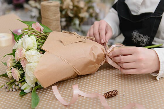 Мастера нашей студии знают секреты составления букетов для разных поводов, нюансы цветочного этикета и современные тенденции во флористике. Для «волнующих рассказов» и шикарных презентов они умело подбирают отдельные виды растений или грамотно сочетают их в композициях. Изящным дополнением служат веточки зелени, эффектным — обрамление. Наряду с привычной упаковкой, пленкой или цветной бумагой, используется сизаль, фетр, органза, корзины, даже оригинальные шляпные коробки и креативная крафт-бумага. Наша доставка цветов в Казани – самая гибкая, потому что кроме покупки непосредственно букетов мы предлагаем также разные материалы упаковки и оформления.